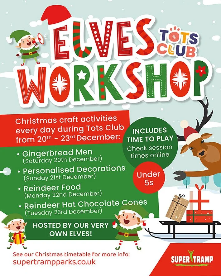 Join our elves during our Christmas Craft Tots Club sessions. The fun starts with 1 hour of play, followed by 30 minutes in the workshop to make your own;